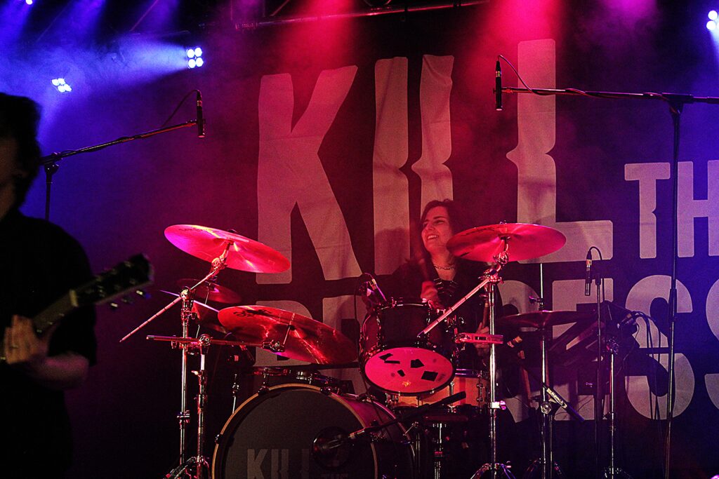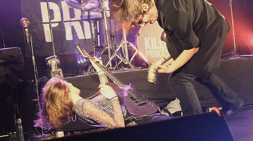 Nous avions fortement apprécié le dernier album de KILL THE PRINCESS, A Fire Within (interview et chronique ici : KILL THE PRINCESS : A Fire Within – Metal Obs’ Magazine), il était temps de voir ce que cela donnait sur scène. Et nous n’avons pas été déçus. Le quatuor 100% féminin emmené par la charismatique Ornella « Nell » Roccia (chant lead et guitare) livre un set des plus énergiques et communicatifs.