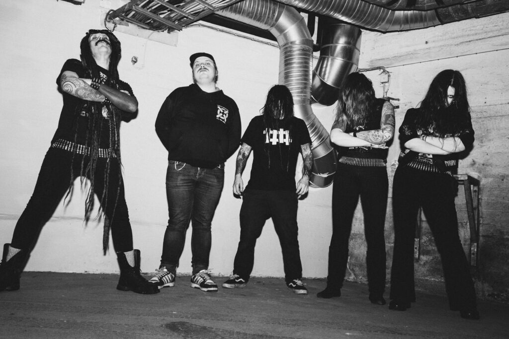 Déjà le second effort pour nos brutes scandinaves d’UNEARTHLY RITES qui remettent le couvert, ou plutôt les watts, deux ans après l’album remarqué Ecdysis (Prosthetic Records) sur la scène death/sludge metal avec leur son sale et brut, mais aussi grâce à leurs textes très personnels et engagés comme par exemple un discours ouvertement pro queer. Et derrière les apparences, se cache une jeune formation à l’expérience pourtant déjà riche dans son pays (la Finlande), avec une recherche quelque peu plus plus mélodieuse sur leur second album donc, intitulé Tortural Symphony of the Flesh, qui vient de paraître début avril 2026 chez Svart Records. Côté paroles, ils y mènent collectivement une lutte de tous les instants pour la bienveillance et l’inclusion dans notre société, comme nous l’ont expliqué deux de ses membres à la sortie de leur journée de labeur… [Entretien réalisé par Zoom avec Jennika (basse/chœurs) et Simo (guitare) par Seigneur Fred – Photos : DR]